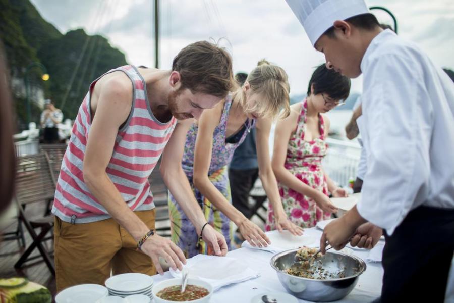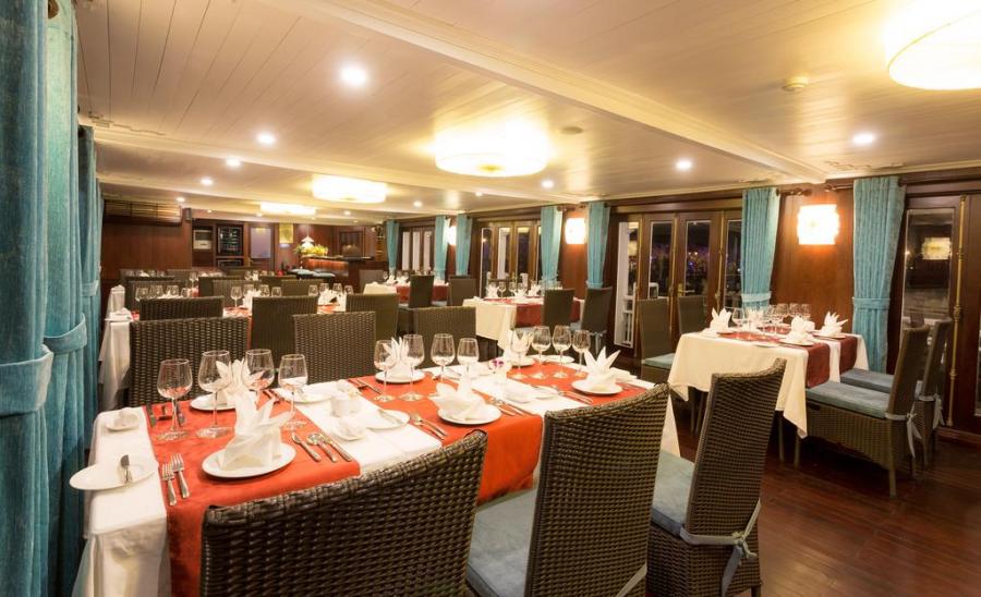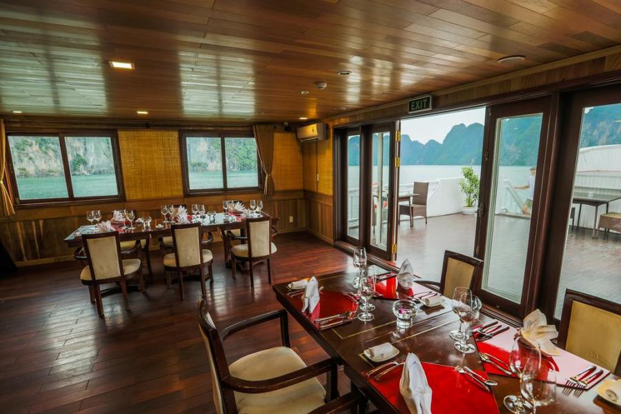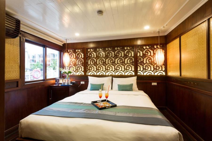 The Bhaya Classic boats are wooden boats constructed in the traditional oriental style long favoured by shipbuilders in this area. The construction material and style of the boats give them a classic feel which sets them apart from most cruise vessels around the world. On board, you will find atmospheric spaces which speak of the heritage design, and the small boat concept encourages a cosy feel which makes a Bhaya Classic cruise a pleasantly social affair. The colour scheme on board is a fusion of the rich browns of hardwood, white, and turquoise blue trim with red highlights. The wooden furniture on board only heightens the sense of timeless elegance which seems a natural extension of Halong Bay itself.