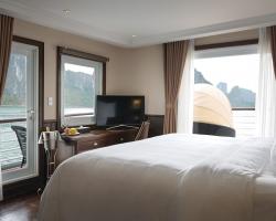 Fusing contemporary style with traditional Vietnamese concepts, mixing elemental materials such as metal and wood, which makes the Paradise Elegance a stunning work of art, berthed magnificently in the middle of the world wonder Halong Bay.