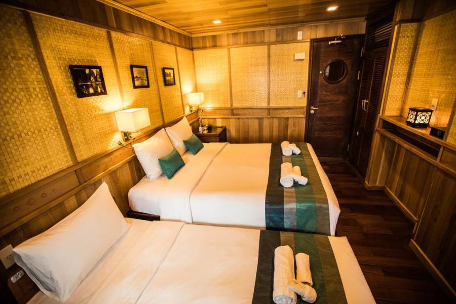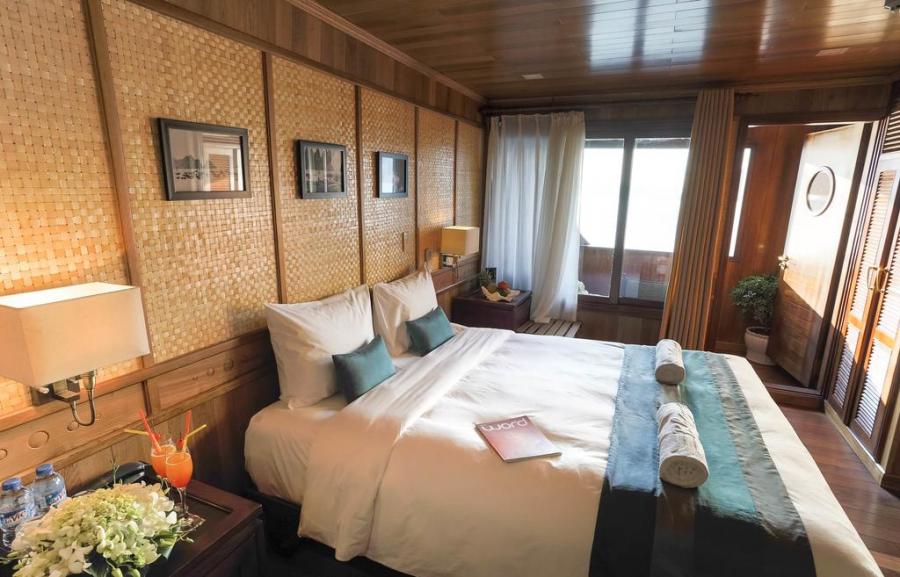 Premium Balcony Cabins, with an area of 20 square meters, raise the bar by offering genuine comfort for up to three adult passengers, with triple occupancy in mind from the design stage. Cabin interiors offer an understated elegance, and connecting rooms ideal for families are available. A private balcony with each cabin provides a comfortable space to view Halong Bay.