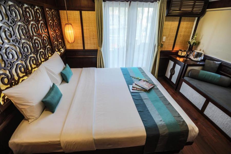 Beginning operations in April 2015, the Bhaya Classic Premium Line features smaller boats that deliver a boutique experience emphasizing privacy, while maintaining the classic oriental design found on all Bhaya boats. Large passenger cabins accommodate up to three adults in full comfort, with just 3 to 7 cabins on each boat. Bhaya Classic Premium Line boats provide a uniquely personal space to appreciate the magnificent scenery of Halong Bay.
