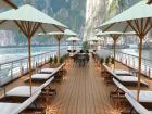 12:30 Enjoy lunch with Vietnamese and International dishes served while cruising in the magnificent Halong Bay, admiring the fascinating rock formations in the bay.