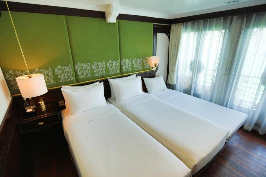 The fleet is composed of 02 luxurious twin ships, boasting 32 spacious private cabins each and belongs to the biggest cruises available in Halong Bay at the present. Boarding a maximum of 80 passengers per ship, The Au Co provides the most unique yet comfortable cruising experience with a strong touch of Vietnamese culture exploration.