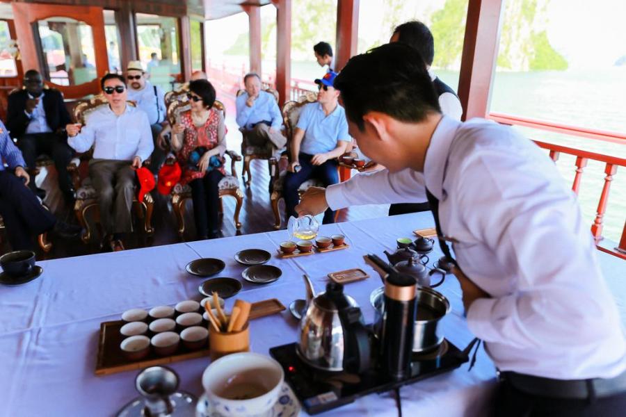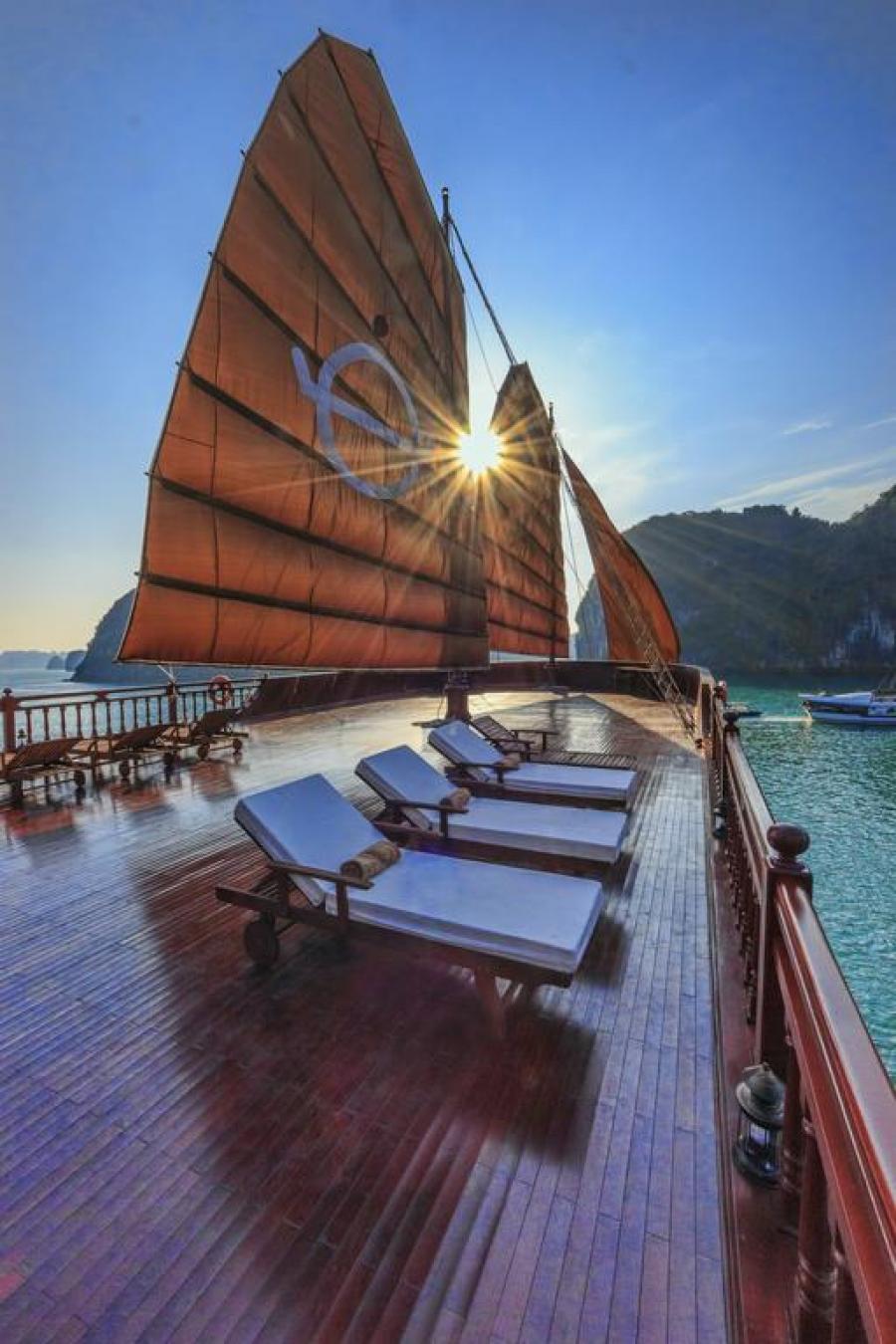 6.30-7.45 Wake up to the gentle lapping of the water against the boat and as the first rays of the sun announce a new day. Before enjoying breakfast have cookies and tea and then try the tai chi session on the sundeck as the sun rises over Bai Tu Long Bay