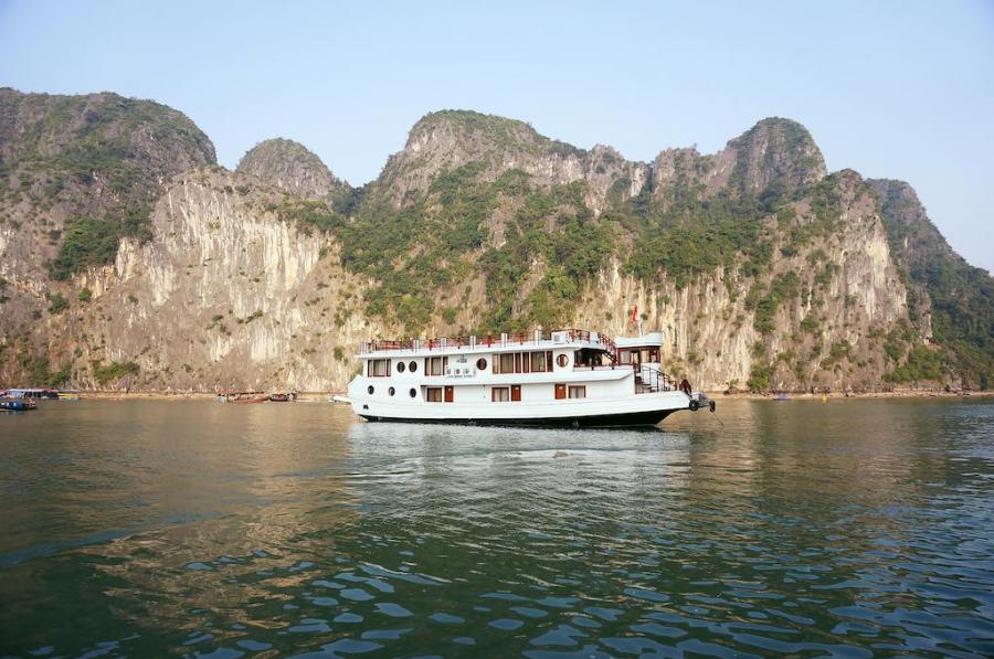 Built in 2009 and newly renovated in 2014 in ancient Vietnamese style, Oriental Sails features 18 deluxe cabins of traditional style combined with modern facilities and comfort. The junk boasts rattan & wooden furnishings, a multitude of windows for amazing views from the inside, and a panoramic sundeck allowing different activities with the beauty of Halong Bay as a backdrop.