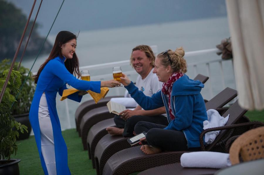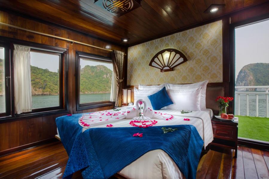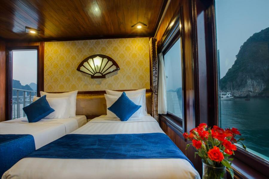 In general, the cruise features spacious, well-appointed cabins and suites with large en-suite bathrooms, large sun-deck with comfortable lounging furniture and elegant dining rooms and bars. We have designed and fitted our boats to international standards while maintaining traditional style, creating the perfect balance of modern comforts and nostalgic ambiance. All cabins are well-organized and sophisticatedly designed by equipping a plenty of modern facilities & technology which look like you are staying at 4-star luxury hotels on land rather than a cruise in the bay. Here is also our major difference from other cruise owners.