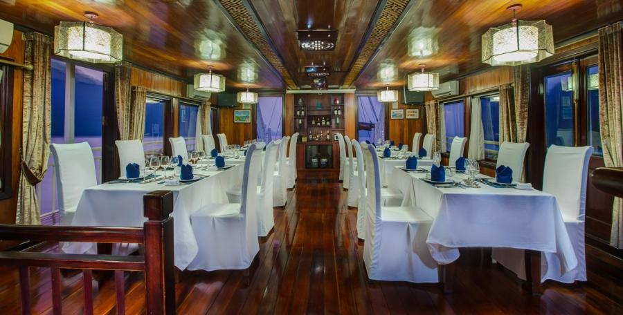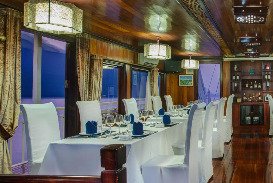 + Meals on board are fusion: Vietnamese, seafood & international. Guests should advise of any special food preferences, allergies or dietary requirements at least one (1) week prior to the cruise date.