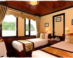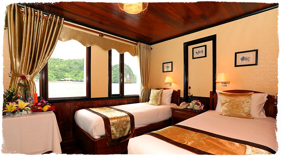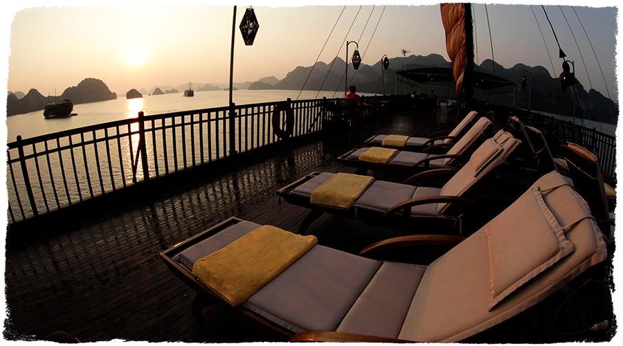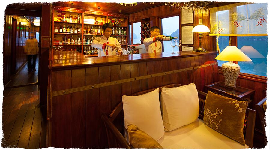 Your cabin is your personal retreat. Feel home in our fully equipped spacious timbered bedrooms with private big bathrooms that define true comfort and privacy. Plus, enjoy the spectacular view of Halong Bay night and day through wide windows.