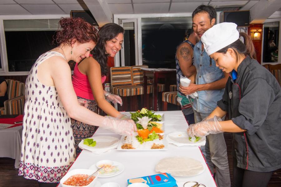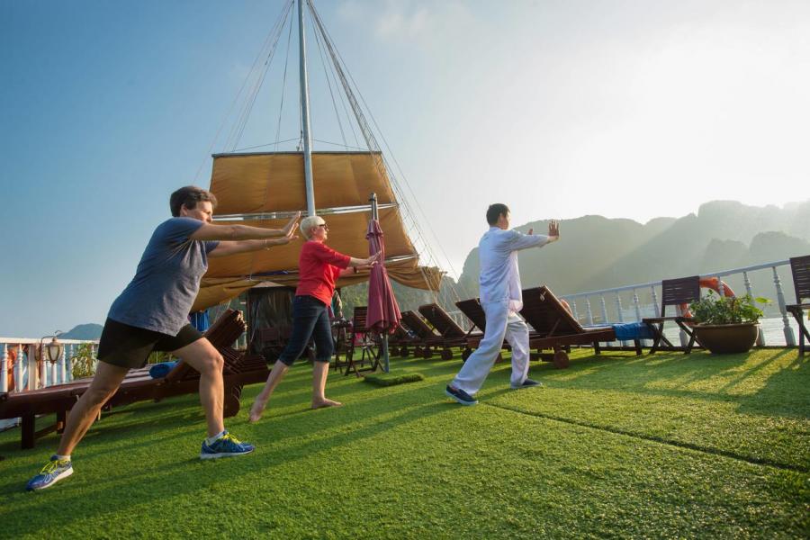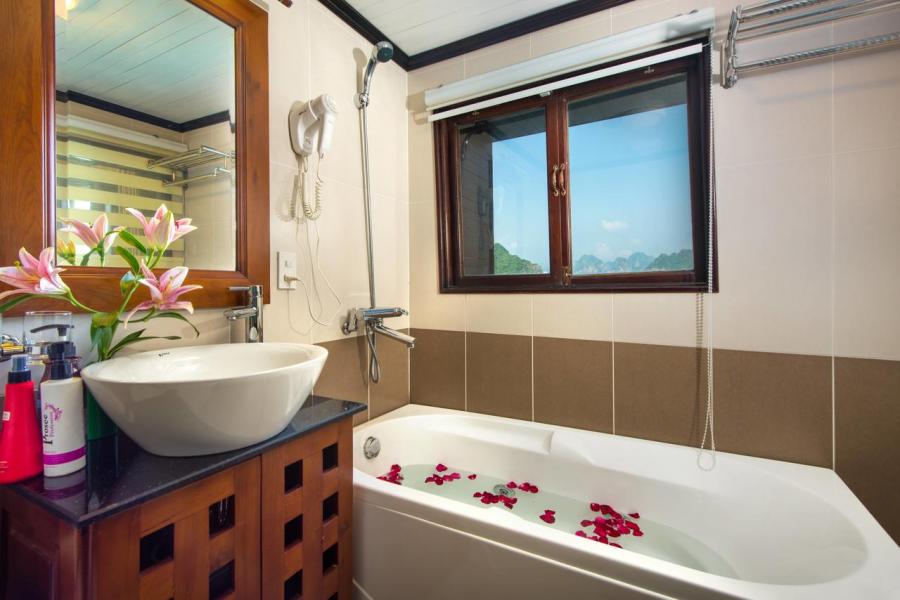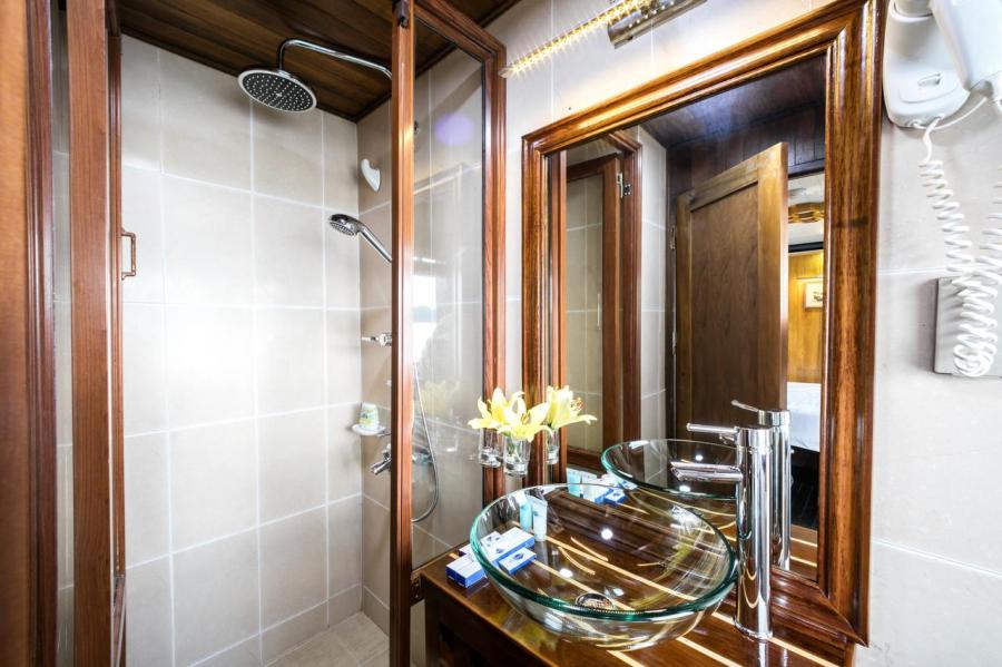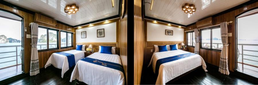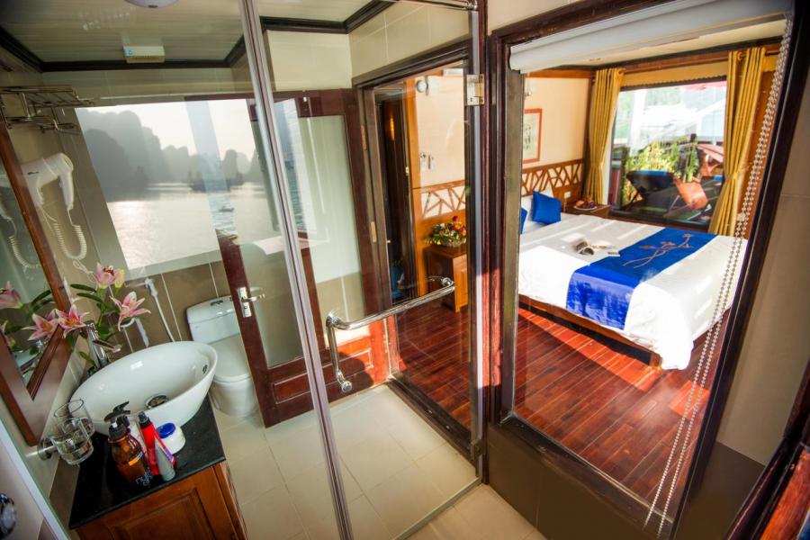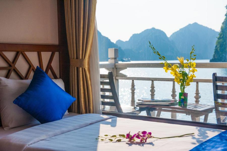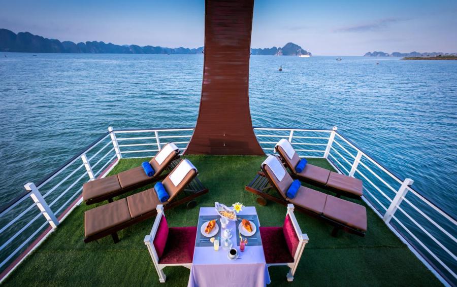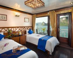 Built in 2013, Gray line Ha long is the newest Classic cruise of 113-years worldwide brand Gray Line. Spreading over 3 decks with 14 luxury cabins, it offers boutique interiors with oak-wooden wall. All rooms and bathrooms have large sea view. VIP cabin (Suites) has private terrace, Jacuzzi bathtub and private balcony. More different than other cruises in Halong Bay, Gray Line Halong Cruise's first criterion is taking serious care to ensure you the safest cruising in Halong Bay.