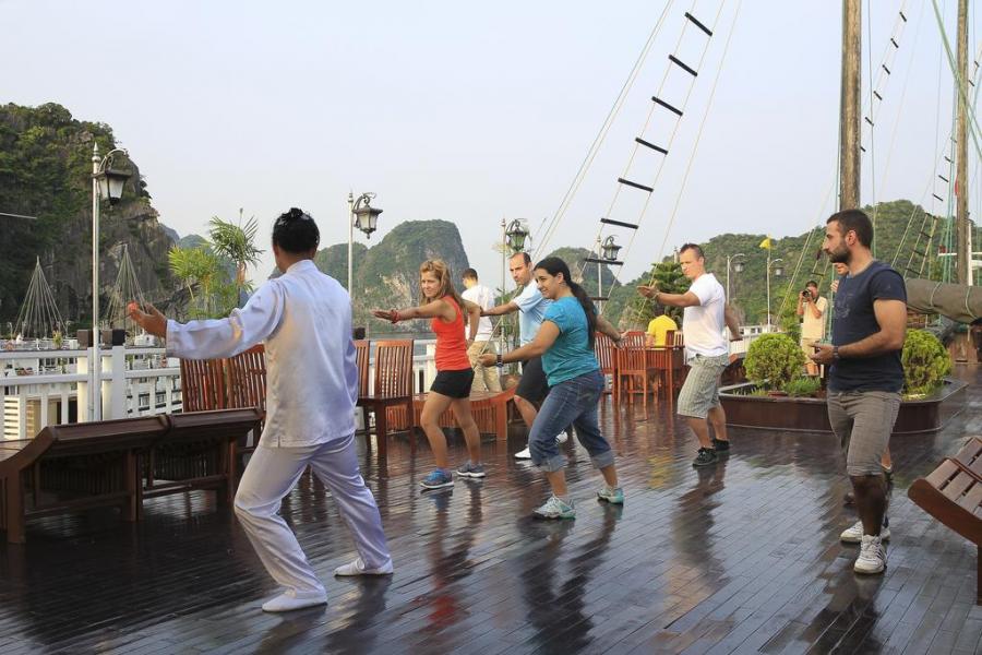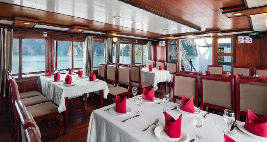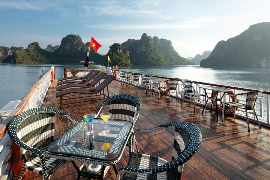 You will have a chance to enjoy your holiday on most beautiful bay in Vietnam on good and elegant cruise with beautiful boat with large bedrooms, lovely deck dining and a top viewing deck with lounge chairs for the amazing sunset. Delicious food with lovely presentations and interesting activities including kayaking, swimming and visiting the limestone cave all highlights. The staff was so helpful and kind. This is the boat to take