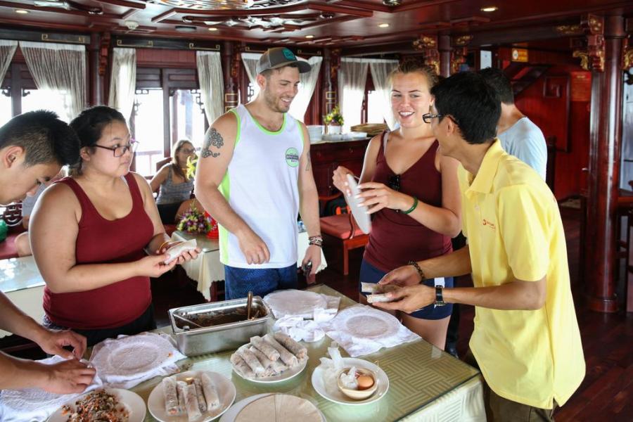 The Imperial Junk, traditional sailboat built of wood with modern facilities and first class service, is perfect for exploring Halong Bay on Imperial Cruise.