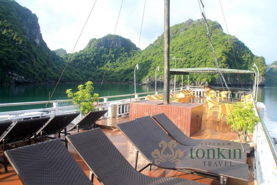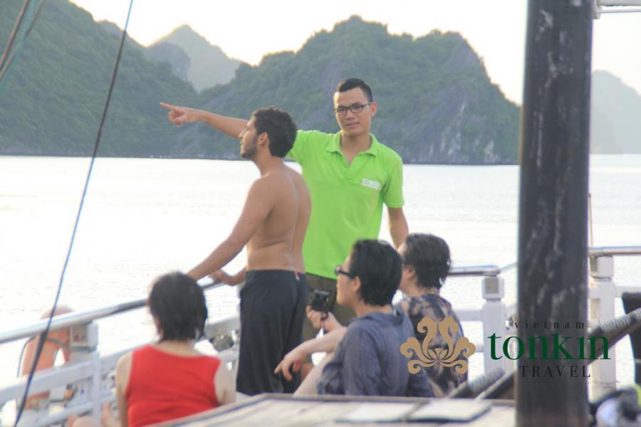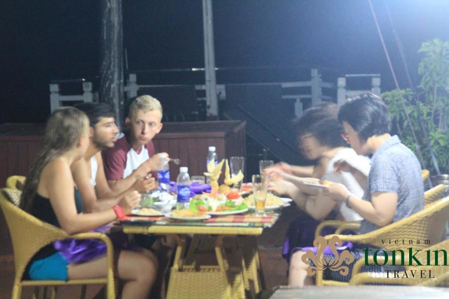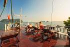 17h00: back to the boat, go up the huge sundeck & enjoy small sunset party with local fruits & tea. You will have chance to jump off from the boat into the emerald water, swimming in free style.