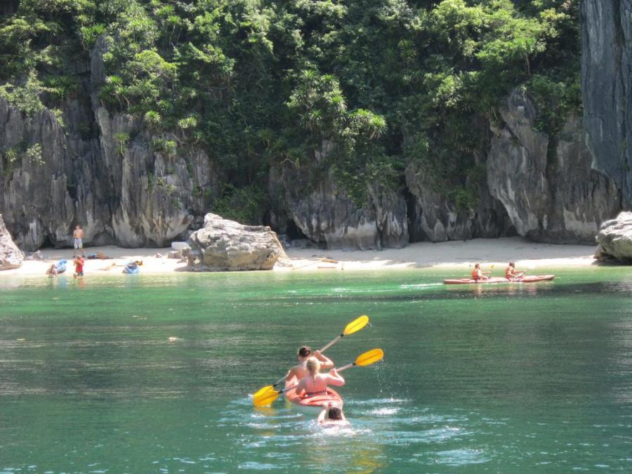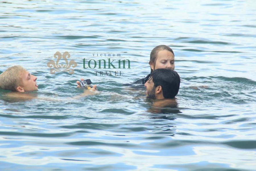 15h00: Kayaking around Dark & Bright cave area which are located under water a millions of years ago & you may even see wild monkeys. This is also the most beautiful lagoon in Lan Ha bay for kayaking activities. If you don't like to do kayaking, you can sit on the sampan boat which is controlled by fisherman to go around.