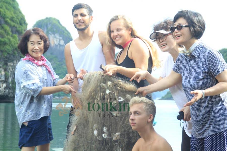 13h00: Check-in your cabin. Enjoy fresh seafood lunch. The cruise will escape crowded Halong bay, keep sailing toward Lan Ha bay & Bai tu long bay where less touristy, quiet & cleaner than Halong bay. You will have chance to take photographs when we passing amazing islands, islets, beaches: Finger islet, Frog islet, Teapot islets, Dark & Bright cave...