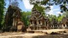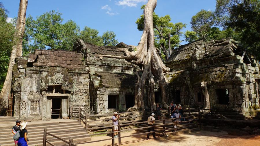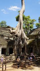 Visit Angkor Thom, the South Gate of Angkor Thom, Bayon Temple, built from the late 12th century to the early 13th century by King Jayavarman VII and consists of 54 towers, the Royal Enclosure, the Phimeanakas, the Elephants Terrace and the Terrace of the Leper King, then visit Ta Prohm, surrounded by jungle.