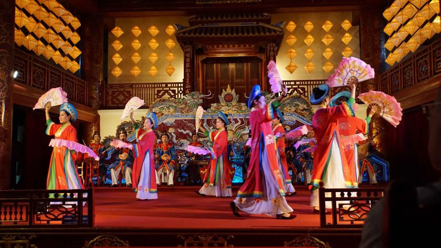 PM : After lunch, boat trip to visit Tam Coc to see the beauty of the karst formations as you pass along their base and row into one of the many caves carved through the limestone. Then, cycle for an hour on quiet roads through villages, rice fields, rivers and rocky outcrops in Tam Coc - Bich Dong (around 5 km). Dive back to Ha Noi and drop off at your hotel around at 18:00PM. Take bus to Hue. Overnight at bus