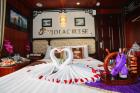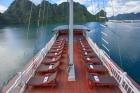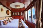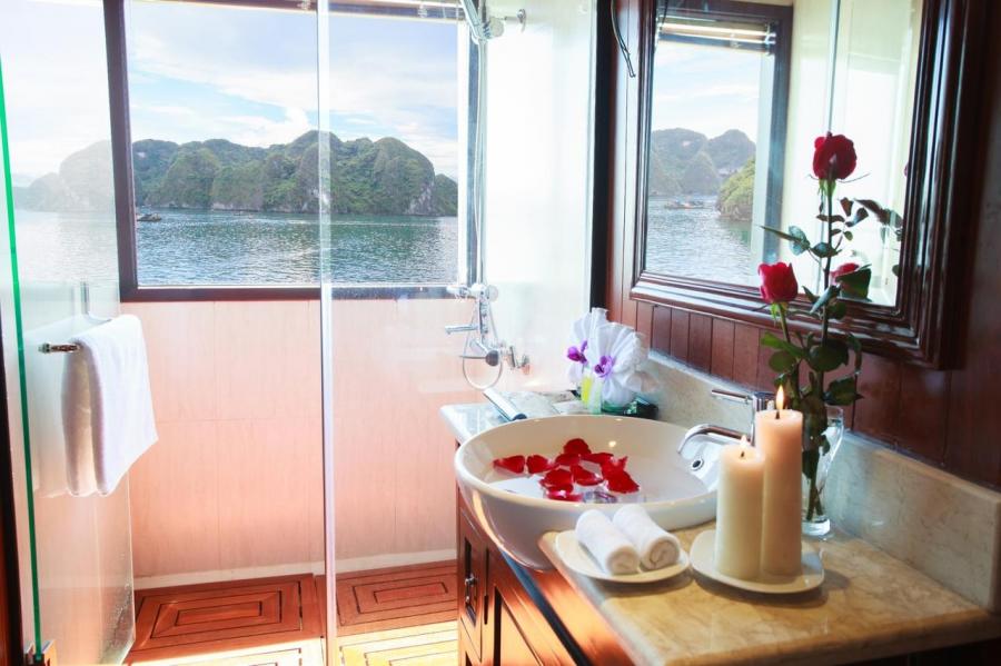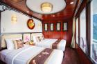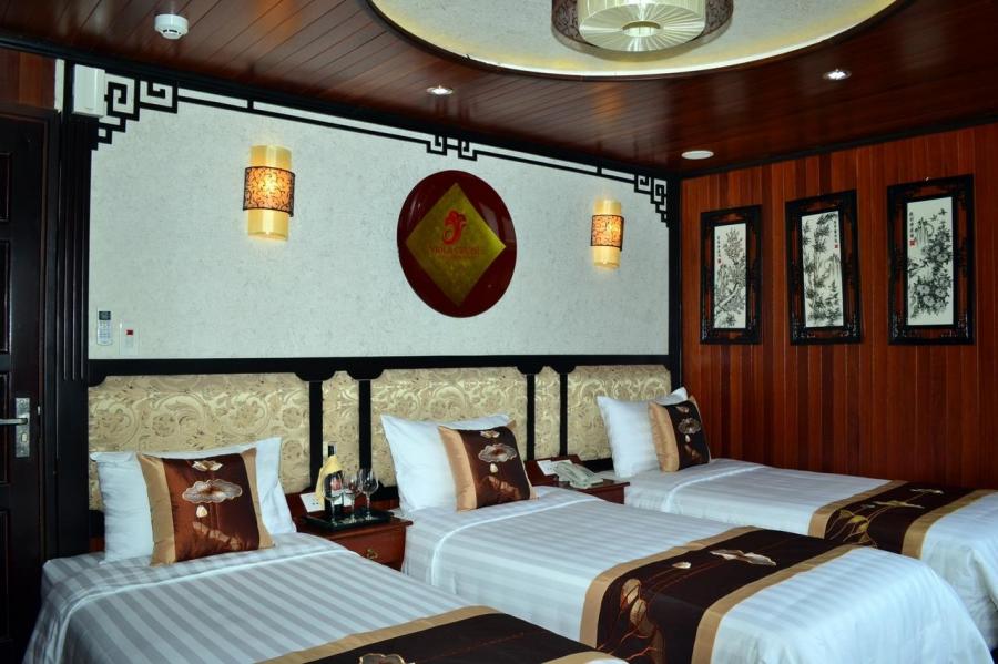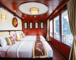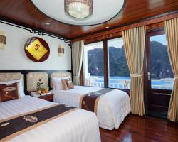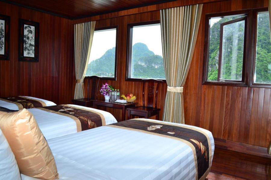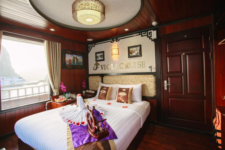 Viola Cruise Halong bay is being a four star cruise ship, features 16 bedrooms which are divided into 4 main types, name Suite, Luxury, Deluxe and Family The cruise is made from high quality wood and steel to bring every traveller absolutely safe stay on Halong Bay. All 16 rooms on board is design elegantly incorporating substancial wooden fixtures to provide customers with a warm ambience